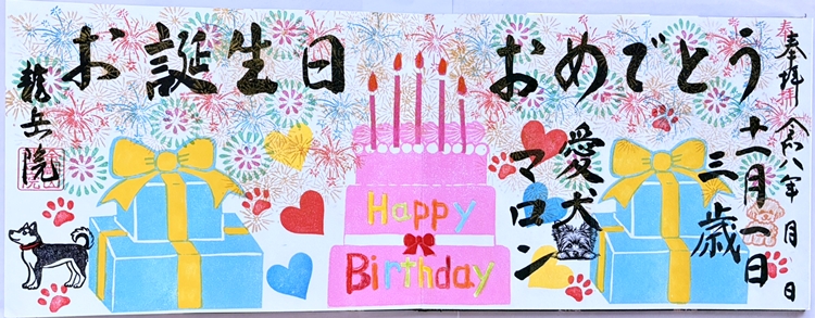 ペットのお誕生日御朱印もお書きしております。